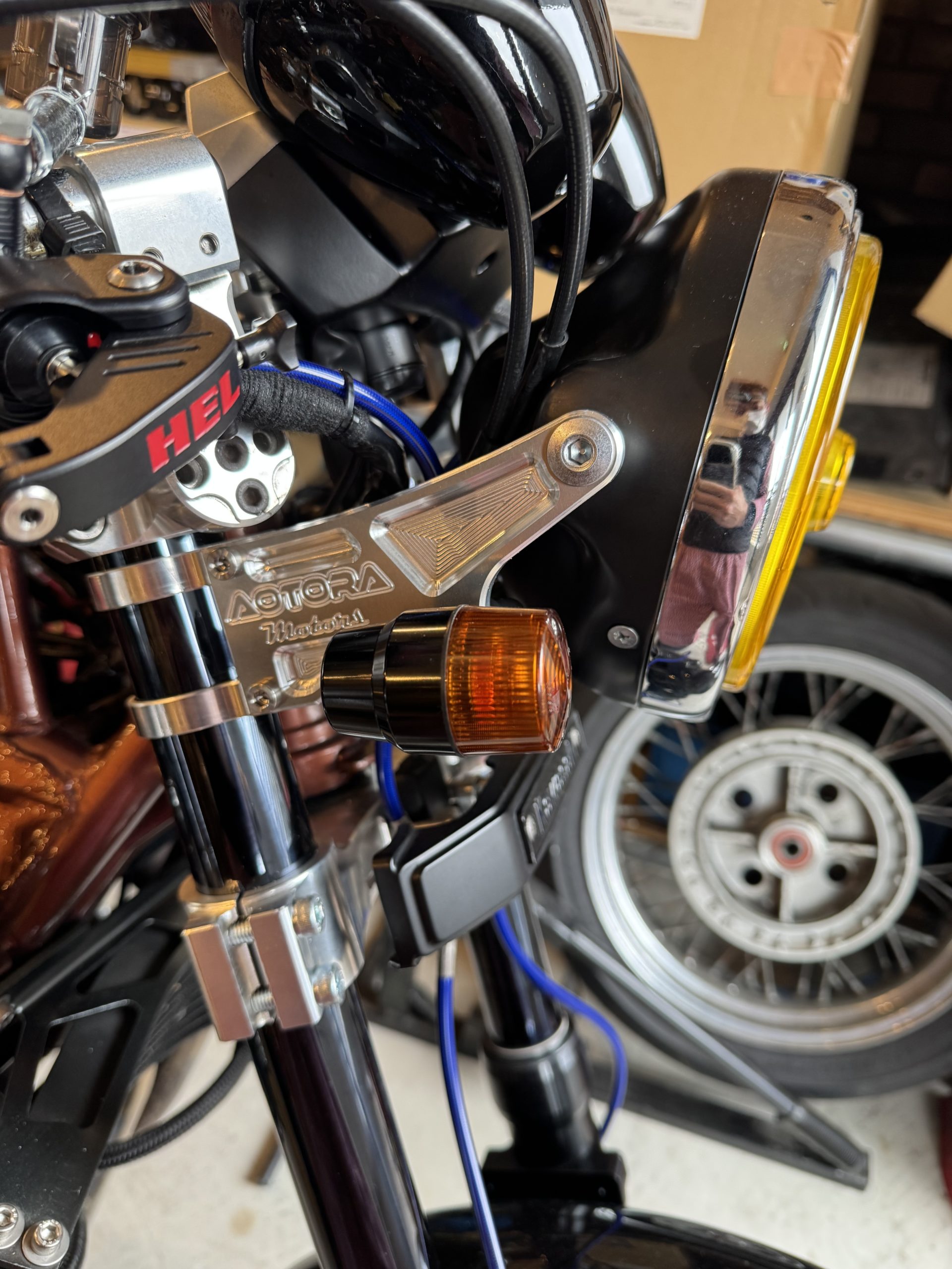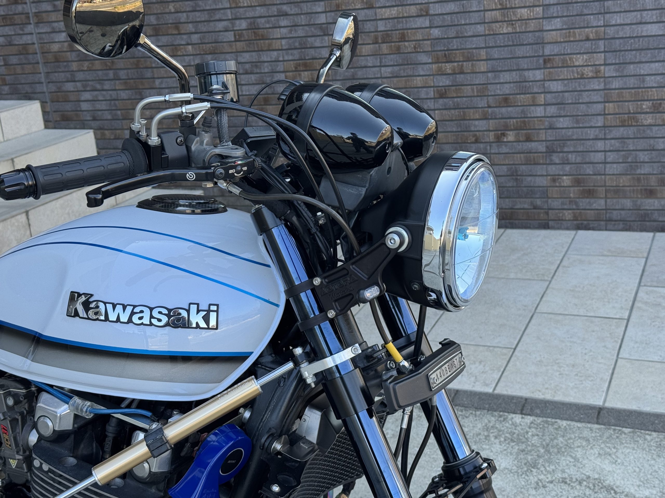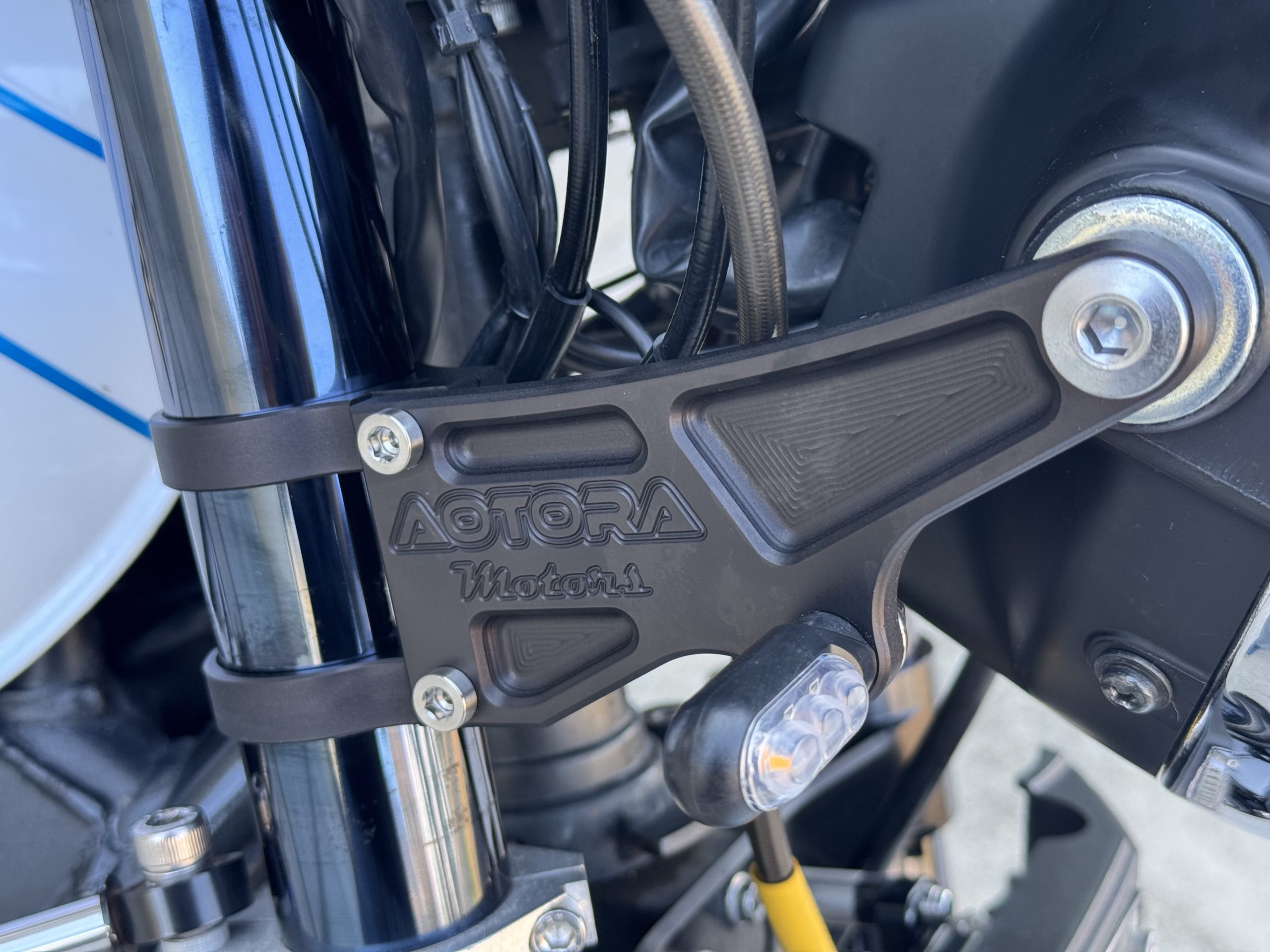 そんな想いで通常の社外ライトステーに比べフロントフォークからライト固定ボルトまでの距離を125mmと市販の平均より30mm程長めに取った設計です。