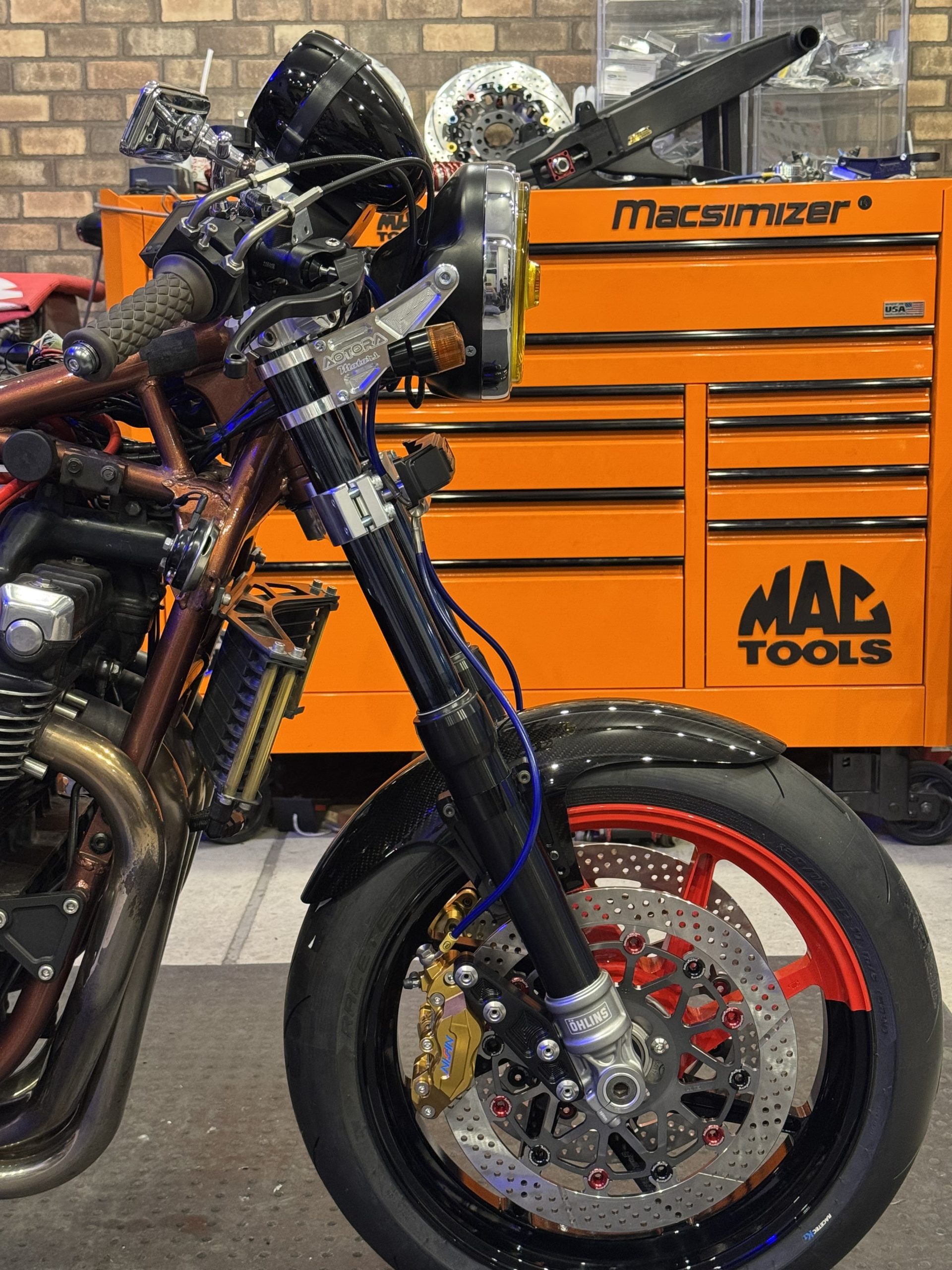 正立フォーク、インナーチューブ径が41φ、43φの車両であれば取付可能です。